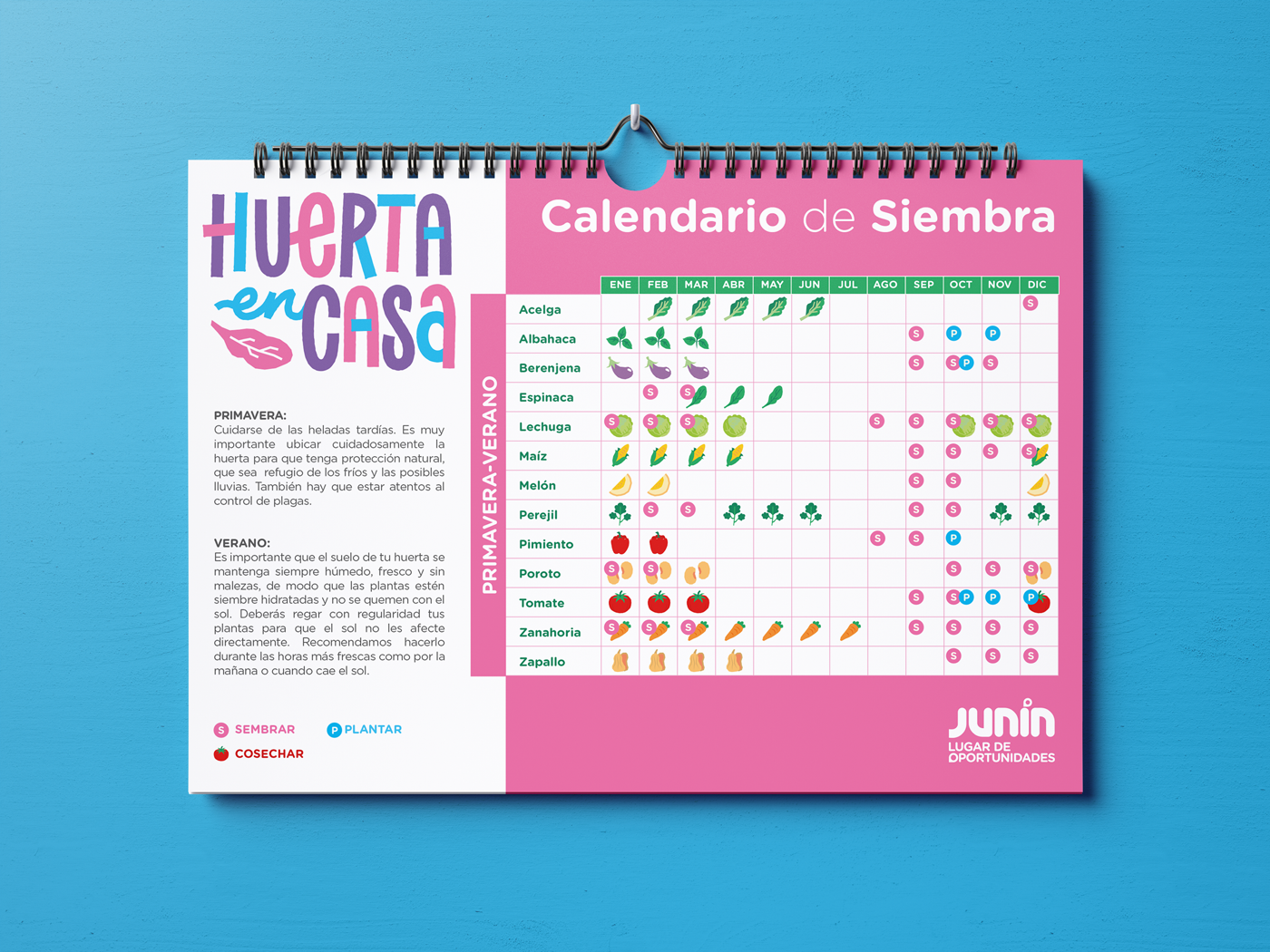 Tuvimos el honor de trabajar junto al Gobierno Local de Junín en Huerta en Casa, un proyecto que promueve el aprendizaje sobre huerta, cocina y compost a través de charlas abiertas a la comunidad. Desarrollamos la identidad gráfica completa, incluyendo su marca, paleta cromática y sistema tipográfico. También realizamos cuatro ilustraciones originales aplicadas en las presentaciones del programa, así como dos calendarios de siembra para acompañar y guiar a los participantes. Además, diseñamos un kit de íconos basado en vegetales que pueden cultivarse y cosecharse en casa, pensado para ampliar las posibilidades de comunicación del proyecto y unificar su estética visual. Un trabajo integral, creado para aportar claridad, coherencia y una comunicación más cercana entre el programa y su comunidad. We had the opportunity to collaborate with the Local Government of Junín on Huerta en Casa, a project that promotes learning about home gardening, cookin
